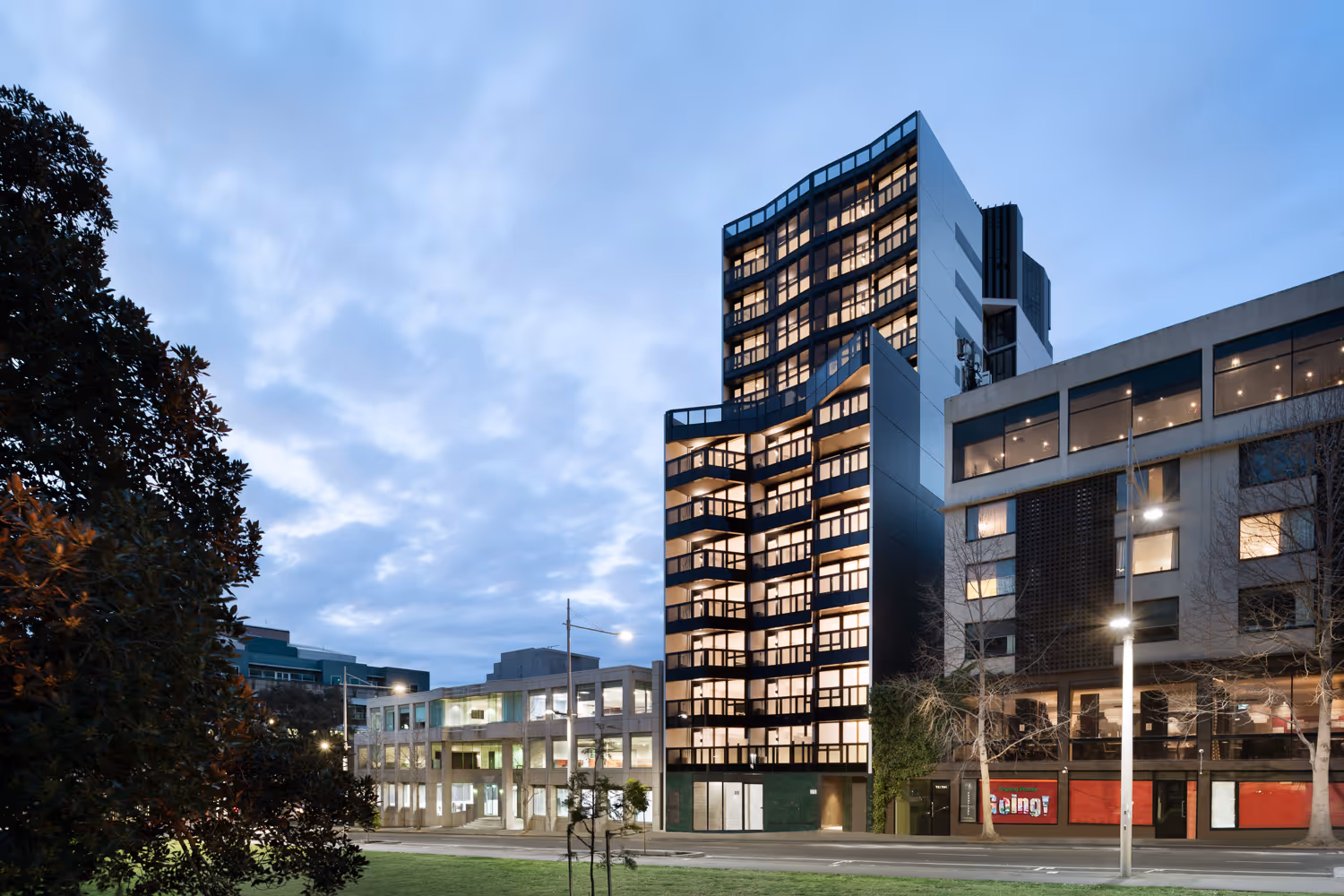 Comprising 62 apartments across 15 levels, single level basement and a ground level commercial / common area the final design produced a stylish, comfortable and welcoming place to live with beautiful finishes and materials selected to endure.