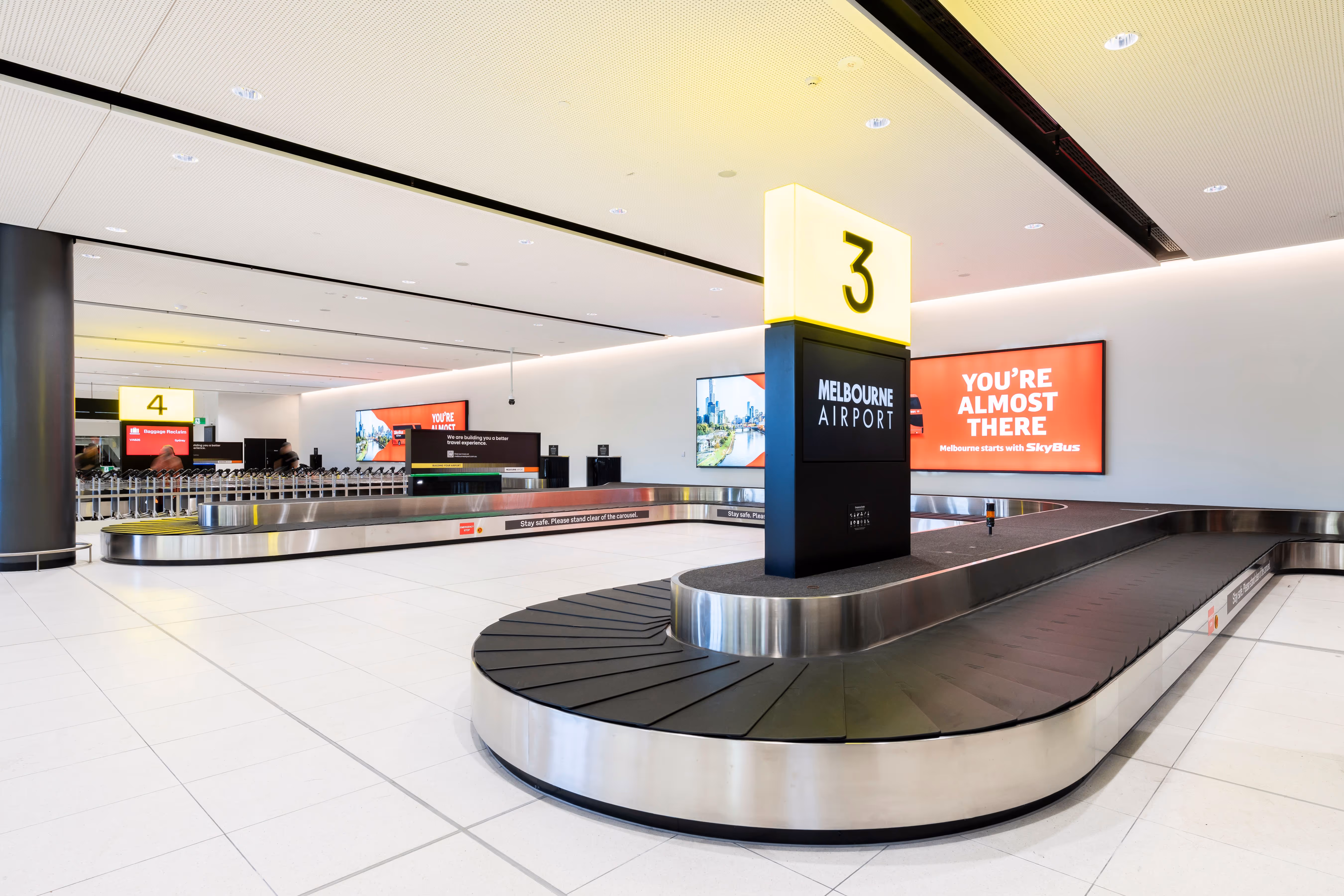 Following the completion of Stage 1, which primarily focused on connecting Terminals 3 and 4 at departures level, Stage 3 addresses a critical expansion of arrivals infrastructure. The project delivers a new, larger arrivals hall at ground level with additional baggage carousels, enabling seamless ground-level connectivity between T3 and T4 and supporting Virgin Australia's inbound operations.